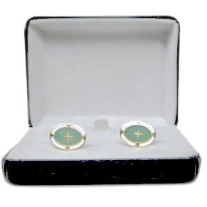 Hard fired enamel is a crushed colored glass. It is crushed to a consistency of a powder somewhat finer than granulated sugar. This powder is delicately applied with tweezers into a metal cavity. Next, the piece of metal is baked in an oven at 1400 °F three times. The ideal metal for this process is gilding metal because it can withstand the high temperatures of the oven it is baked in. The piece is then ground flat creating a flush service. This process creates a beautiful piece with a mirror like finish and outstanding durability.